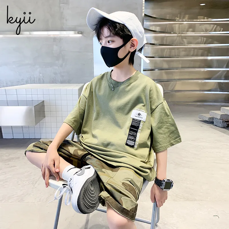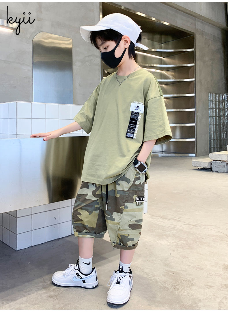 KYII Boys summer suit short sleeved two piece Set kyb027